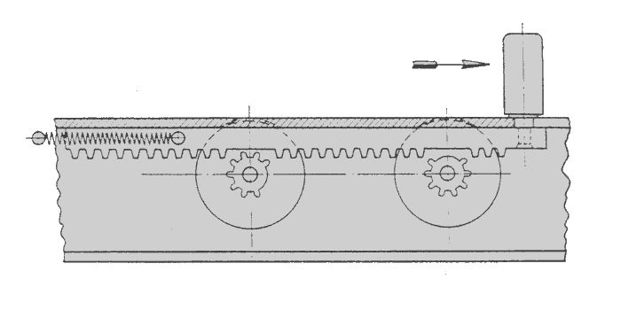 Das geteilte Sprossenrad (links) und der Tasten-Einstellmechanismus (rechts) |