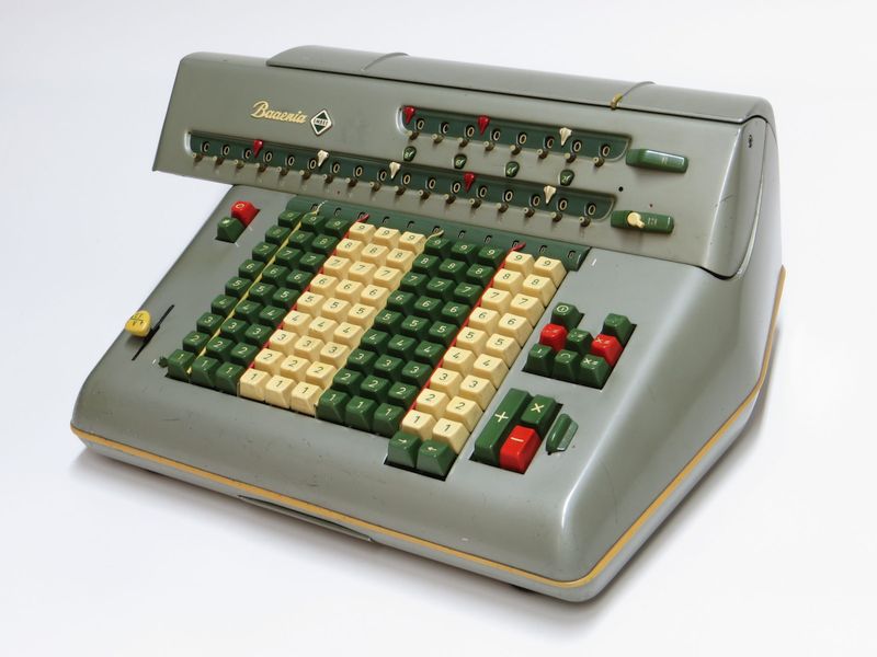 Math. Bäuerle GmbH (St. Georgen) | Badenia TE(H) 10/13 Duplex TAV 13 Duplex | ab 1936 | Staffelwalze Parallelwerk | 7×6×(10+10) 9×8×(13+13) | Martin [1] S. 396f, TE-Modelle auch in der Sonderausführung 10×9×18×18; bei TAV 13 Duplex (Wahltastenautomat ab 1953) Division aus beiden Resultatwerken möglich | - |