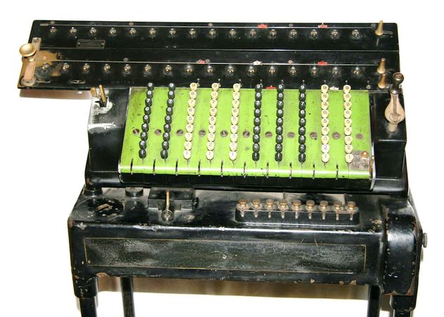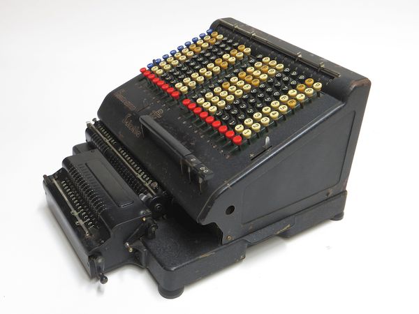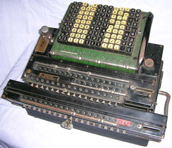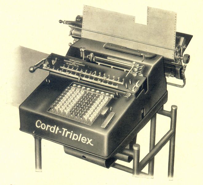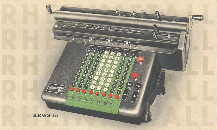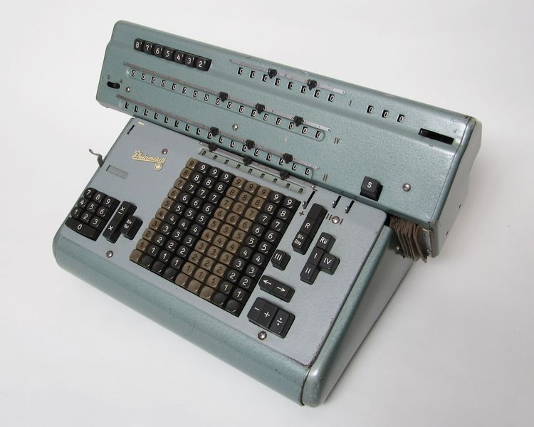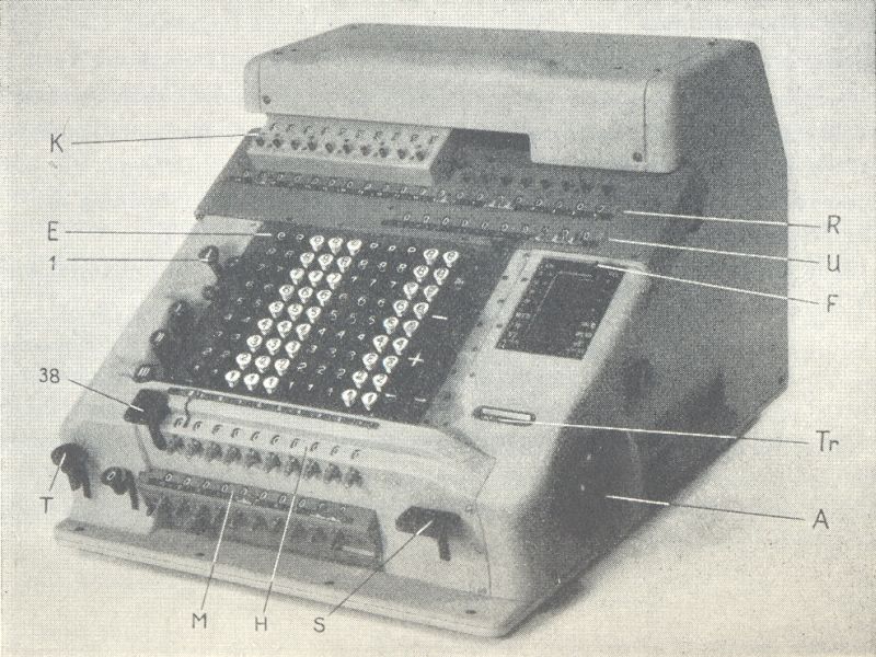 [5] | Friedrich A. Willers, "Mathematische Maschinen und Instrumente", 3. Auflage, Akademie-Verlag, Berlin 1951, Abschnitt II.C.2.l: "Elektrische Tastenmaschinen". |