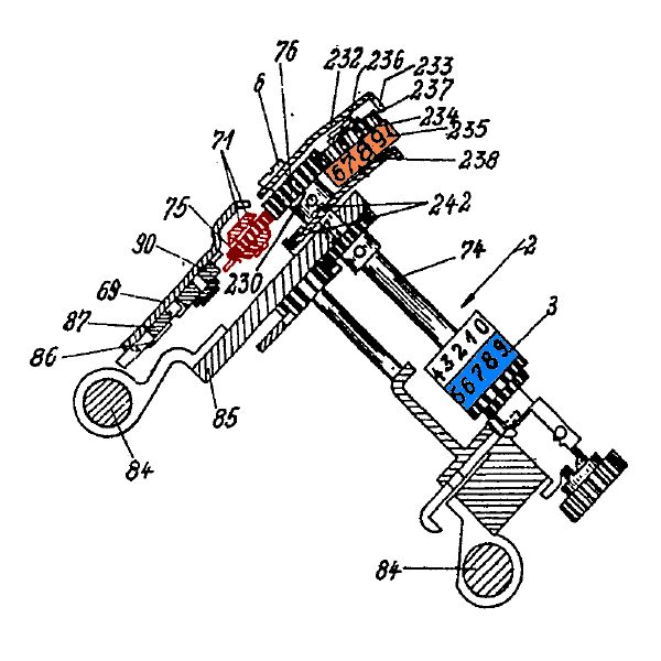Zehnerschaltvorrichtung der Facit T (aus dem Patent DE535576) |