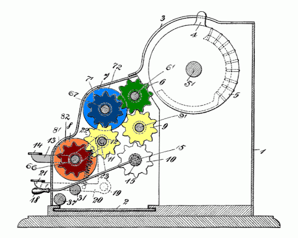 Tastenmechanismus der Facit CM2-16 (aus dem Patent DE1082754) |