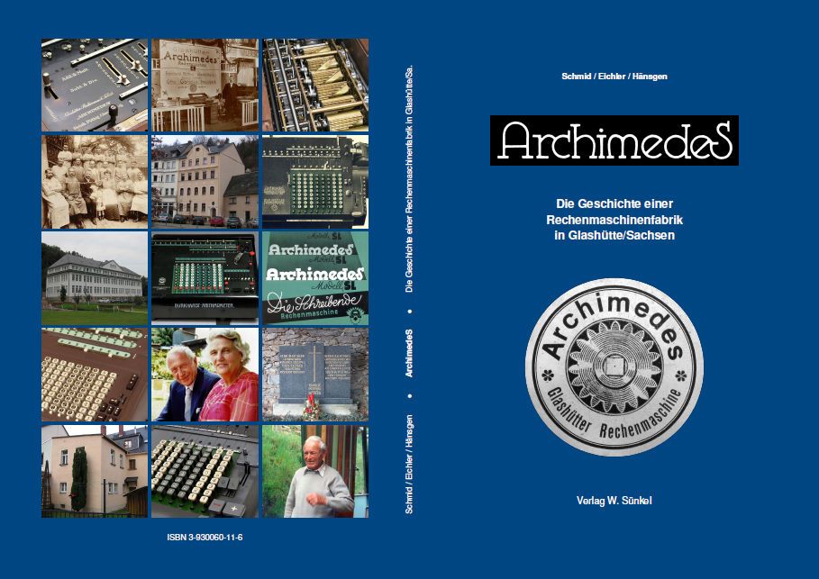 Das Buch erzählt auf 184 Seiten im Format A4 die wechselvolle Geschichte der einst weltbekannten Glashütter Rechenmaschinenfabrik "Archimedes" aus unterschiedlichen Perspektiven. Es enthält mehr als 350 Abbildungen, darunter viele Fotos aus dem Nachlass der Familien Pöthig-Eichler und Hänsgen. Der erste Teil "Die Rechenmaschinenfabrik Archimedes - Eine Spurensuche (nicht nur) in Glashütte/Sa." beschreibt die Entwicklung der Fabrik von ihren Anfängen als Werkstätte für Feinmechanik um 1900 bis zum Produktionsende im Jahr 1960. Im Vordergrund stehen der Firmengründer Reinhold Pöthig, der Vertriebspartner Hans Sabielny, der kaufmännische Leiter (und Pöthigs Schwiegersohn) Ulrich Eichler sowie der Technische Leiter im späteren VEB Archimedes, Hellmut Hänsgen. Sie alle waren Pioniere im Rechenmaschinenbau und Visionäre, die den Grundstein für den Erfolg der Firma legten. Gemeinsam mit ihren Konstrukteuren, Mechanikern und den vielen weiteren Mitarbeitern, die heute gar nicht mehr namentlich bekannt sind, führten sie das Werk in der kleinen Stadt Glashütte im Erzgebirge durch mehrere ereignisreiche Jahrzehnte der deutschen Geschichte, darunter zwei Weltkriege und wirtschaftliche Krisen. Im zweiten Teil "Meine 19 ARCHIMEDES Jahre" berichtet Ulrich Eichler über seine persönlichen Erlebnisse als Geschäftsführer, über den Aufschwung des Betriebs in den 1930er Jahren und die schwierige Zeit des Wiederaufbaus nach Kriegsende. Der dritte Teil ist eine von Hellmut Hänsgen verfasste Chronik mit dem Titel "Durch Räder und Hebel zu Ziffern und Zahlen". Es ist die Geschichte der drei Glashütter Rechenmaschinenfabriken Burkhardt, Saxonia und Archimedes aus der Sicht eines technischen Leiters, der mehrere Jahrzehnte im Betrieb tätig war. Hänsgen hat sein Manuskript bereits 1988 fertiggestellt, aber es galt lange als verschollen und wird nun erstmals veröffentlicht. Das Buch schließt mit einer Übersicht zu allen bisher bekannten Rechenmaschinentypen von Archimedes. | ||||||||||